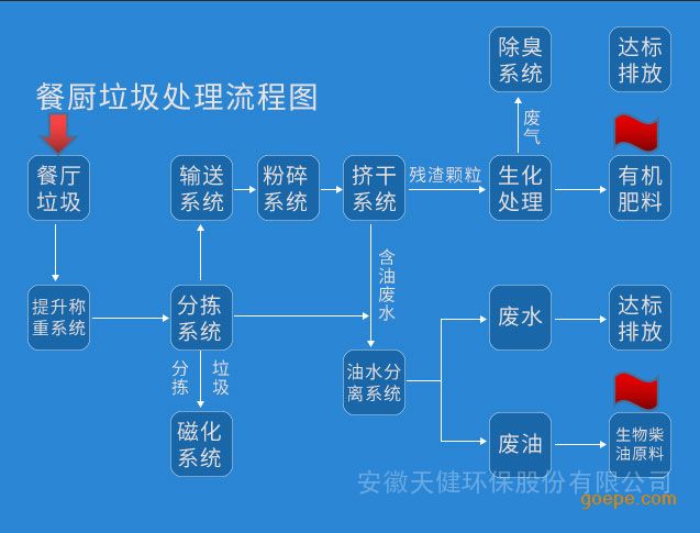 TJC系列一体式餐厨垃圾处理设备采用框架装配式结构,整机由自动上料装置、粉碎系统、挤干系统、油水分离、搅拌系统、生物降解系统(添加生物菌)、自动电控系统、加热和除臭系统组成.生成有机肥及废弃油脂(生物柴油原料).实现了将餐厨垃圾变废为宝,资源再利用.